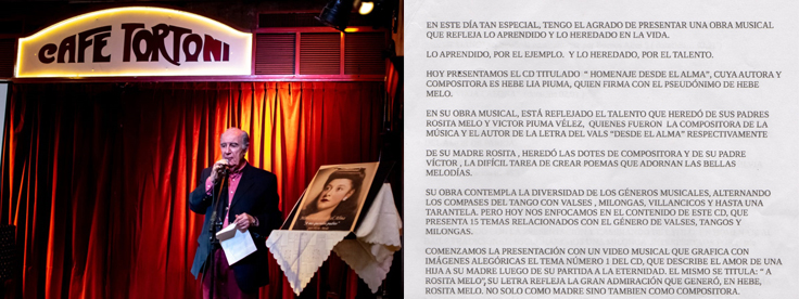 Video presentado en el Cafe Tortoni alegorico al tema "A Rosita Melo".